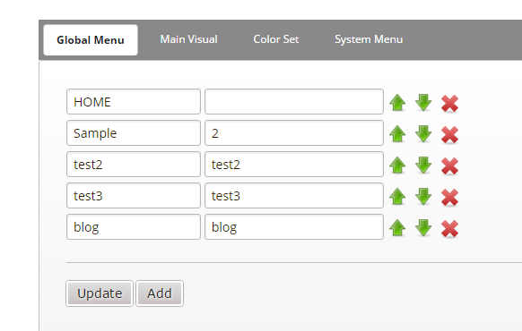 トップページ直下に、blogというフォルダを作り、Theme managerを使いグローバルメニューにblogを加えるとブログのサブメニューが出来上がります