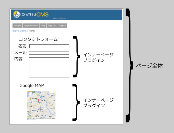インナーページ型プラグインは、ページ内に、パーツ=プラグインを追加するイプのプラグインです