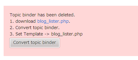 まずは、「Convert topic binder」をクリックしてください
