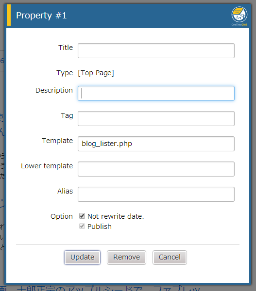 ページプログラム→プロパティのテンプレートに指定