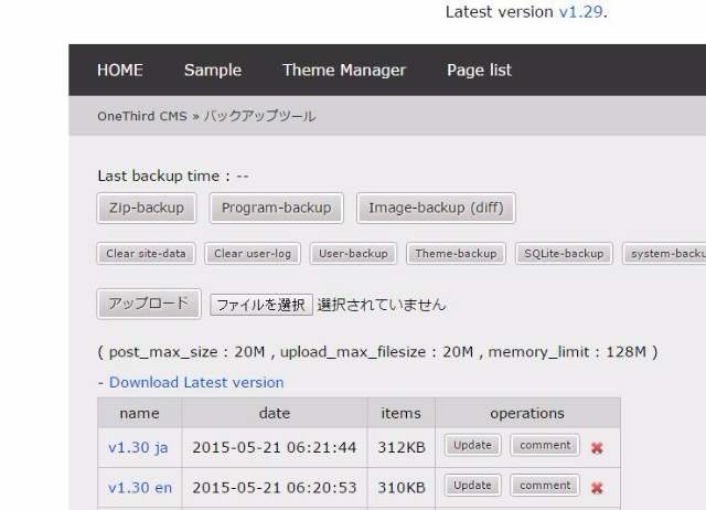 OneThird CMSのシステムファイルをバージョンアップするには