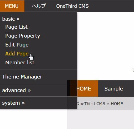 重要:OneThird CMSでは現在開いているページの下層ページとしてページが追加されます