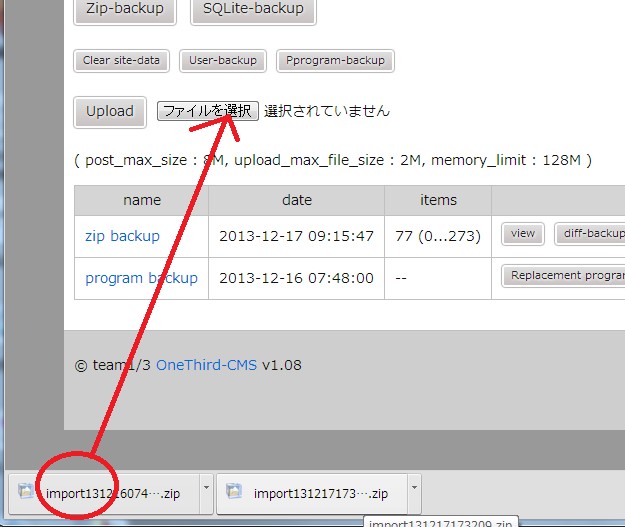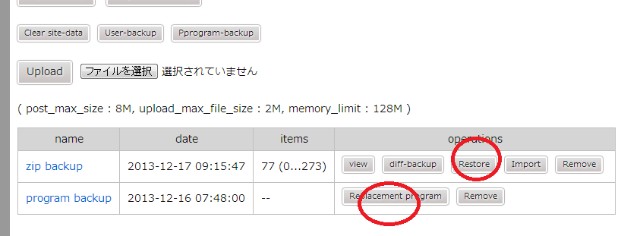 そして、バックアップされたzip backupのリンクと、program backupのリンクをそれぞれクリックしてください