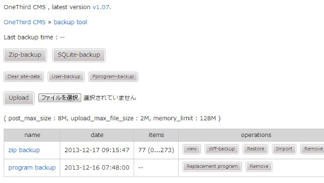 Zip backupと、program backupをそれぞれ一回ずつ実行します