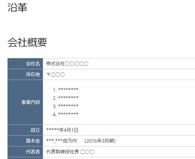 標準的な会社案内を設置します