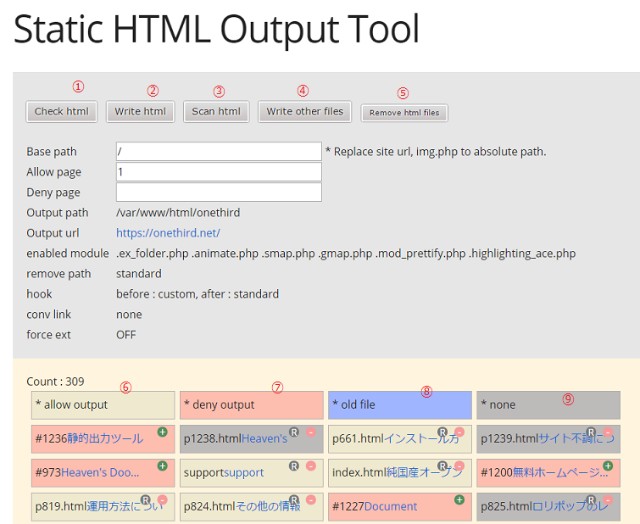 * none  ....  出力設定されているが、静的ページが存在しないもの