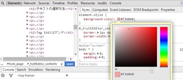 そこで、[tag edit]は選択エレメントのHTML部分を切り抜いて表示します